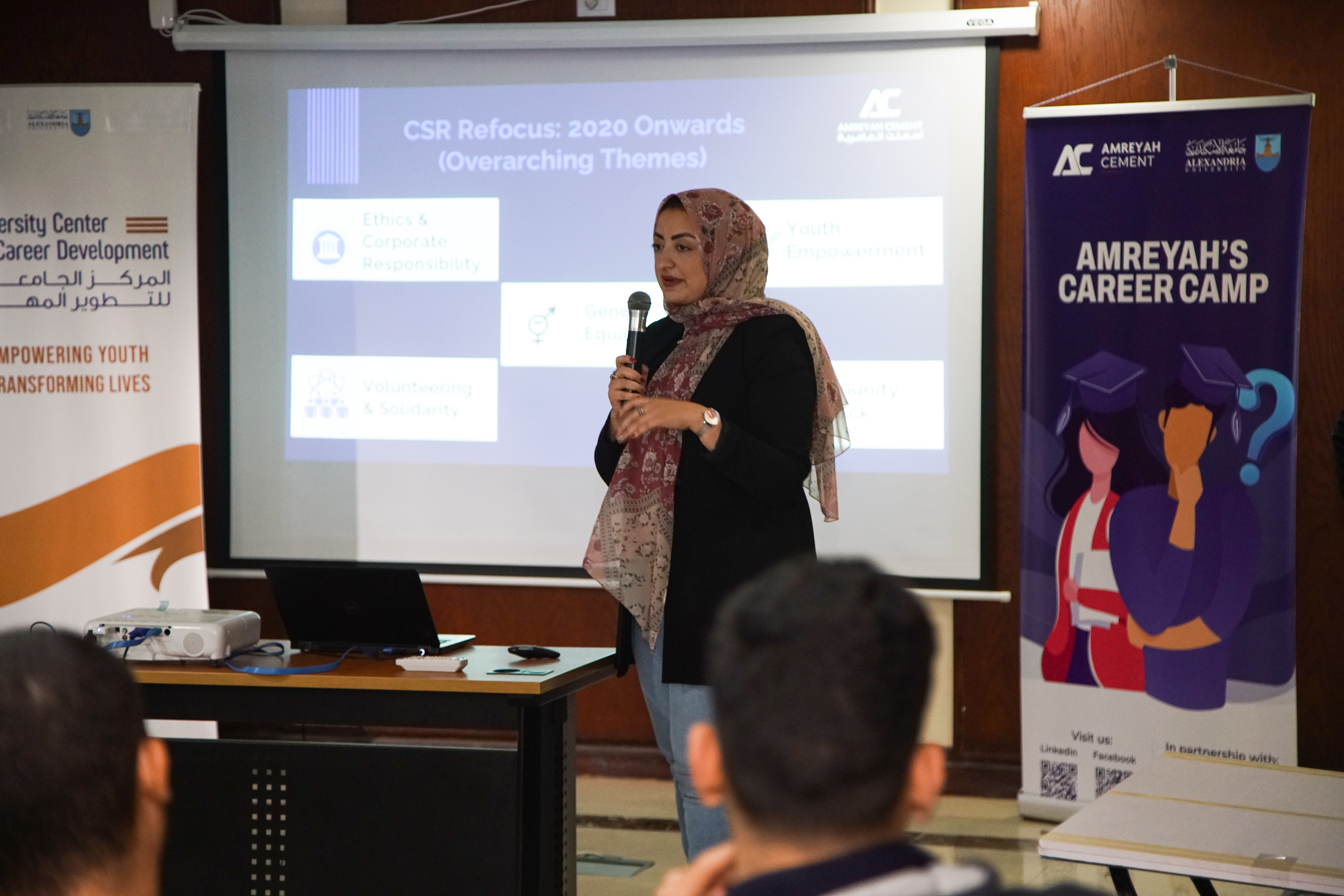 During the 2-day event, I have been able to 1) collaborate with the Faculty of Business at Alexandria University and the University Center for Career Development (UCCD) to have them host the career camp, 2) secure 4 different expert speakers amongst Amreyah’s Middle Management Team to deliver the career advice session, 3) gain the support of the HR team to be present during both days to offer guidance to more than 250 students about CV writing, internship opportunities…, etc., 4) organize a webinar prior to the career camp to raise awareness among the students about the company, the event program, and how they can attend, and 5) coordinate the event logistics including giveaways, branding materials, catering and media services.